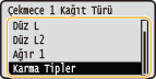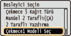 <Kağıt besleyici veya kağıt kulesi takıldığında,Çekmece 2 Kağıt Türü> - <Çekmece 5 Kağıt Türü> görüntülenir.