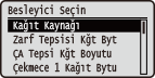 ( ) öğesine bastığınızda, Besleyici Seç menüsü görüntülenir. Varsayılan ayarlar kama sembolü ( ) ile işaretlenmiştir. |