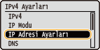 <IP Adresi Ayarları> seçeneğini belirleyin ve