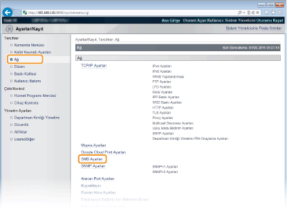SMB yalnızca, isteğe bağlı SD kart makineye takılı iken etkinleştirilir.