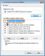 [Local Area Connection Properties] (Yerel Ağ Bağlantısı Özellikleri) Görüntüleyin.