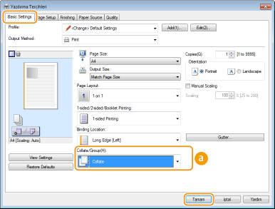 [OK] (Tamam) içinde [Collate] (Harmanla) veya [Group] (Grupla) öğesini seçin
