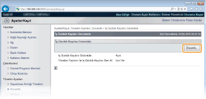Eğer onay kutusunu seçerseniz, örneğin imageWARE Enterprise Management Console gibi aygıt yönetim yazılımları, bir yazdırma geçmişi elde etmek için kullanılabilir. Yazdırma geçmişi elde etme amaçlı yönetim yazılımını devre dışı bırakmak için onay kutusunun işaretini kaldırın. Bu işlev, [İş Günlük Kaydını Görüntüle] onay kutusu seçildiğinde otomatik olarak etkinleşir.