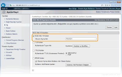 [IEEE 802.1X Ayarları] öğesini tıklatın.