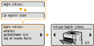 öğesine basın. Eğer ekrandaki prosedürler anlaşılmıyorsa, sıkışan kağıtları temizlemek için aşağıdaki bölümlere bakın. Eğer birden fazla sayıda konumda aynı anda kağıt sıkışması olursa, görüntülenen tüm mesajları denetleyin. Kağıt sıkışmalarını temizlemeye başlamadan önce, Önemli Güvenlik Yönergeleri içeriğinde bulunan tüm uyarıları dikkatle okuyun.