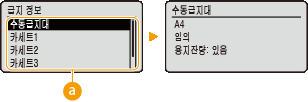 현재 지정된 용지 크기 및 종류를 표시하고, 각 용지 공급원의 용지 잔량을 표시할 수 있습니다.