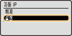 를 누릅니다.DHCP, BOOTP, RARP 프로토콜 중 한 가지만 사용할 수 있습니다. 선택된 프로토콜이 <설정> 로 설정되면 나머지 두 개의 프로토콜은 자동으로 <해제> 로 설정 됩니다.