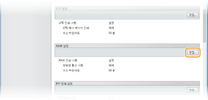 조작 패널 사용조작 패널의 설정 메뉴에서도 LPD 인쇄, RAW 인쇄, IPP 인쇄를 활성화 또는 비활성화 할 수 있습니다.