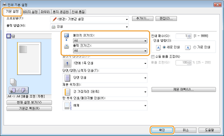 [출력 크기] 에서 용지 크기를 선택합니다.