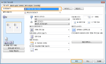 용도에 맞는 프로파일을 선택한 다음 [확인]을 클릭합니다.