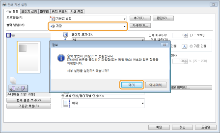 [저장]을 [출력 방법]에서 선택하고 [예]를 클릭합니다.