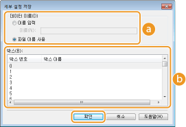SD 카드에서 인쇄 데이터를 저장하는 공간을 상자라고 합니다. 문서를 저장할 상자의 개수를 선택하십시오. 상자를 쉽게 구분하도록 상자에 이름을 지정할 수 있습니다.
