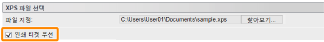 XPS 파일의 인쇄 설정을 지정할 경우[인쇄 티켓 우선] 확인란의 선택을 해제합니다. 해당 확인란이 선택되어 있으면, 일부 항목을 사용할 수 없게 됩니다.
