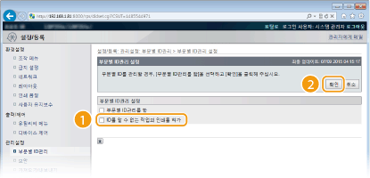 [편집] ([부문별 ID관리 PIN 번호 확인 설정])관리자 모드에서 리모트 UI에 로그온 합니다