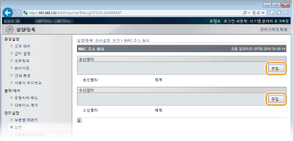 MAC 주소가 잘못 입력되면 리모트 UI에서 기기에 액세스하지 못할 수도 있으며 이런 경우 <주소 필터>를 <해제>로 설정해야 합니다. 주소 필터