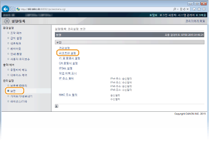 조작 패널의 설정 메뉴에서도 TLS 암호화 통신을 활성화 또는 비활성화 할 수 있습니다. 리모트UI 설정