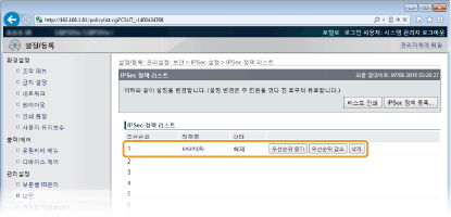 IPSec 통신 설정을 구성하기 전에기기가 통신할 운영 시스템의 IPSec 설정을 확인하십시오. 운영 시스템 설정과 기기 설정이 맞지 않을 경우, IPSec 통신을 사용할 수 없게됩니다.