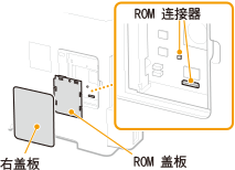 本部分说明如何在本机安装条形码打印组件-F1 或 PCL字体库组件-C1。ROM 用于连接到本机右盖板内的 ROM 连接器。安装 ROM 之前,请阅读安装中的说明。