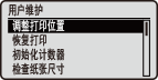 列出每个纸张来源的纸张位置修正和打印质量改进等本机调整的设置,并带简短说明。可以在本机离线时指定这些设置。默认设置标有十字符 (