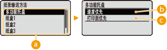 星号 (*)根据其他设置和本机是否按照进纸器、纸仓、信封输送器或 SD卡(所有这些都是选购件)的不同,将不显示标有星号 (*) 的设置。