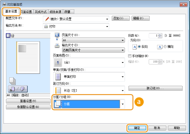 打印多份多页文档时,选择 [分套] 可按照页序进行整套打印。此功能适用于准备会议或演讲的分发材料。