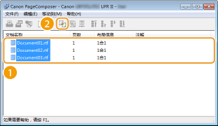 通过使用 Canon PageComposer,可以将多个文档合并为一个打印作业,并以指定的打印设置打印此作业。例如,此功能可以用来合并使用不同应用程序制作的文档并以相同的纸张尺寸打印所有页面。