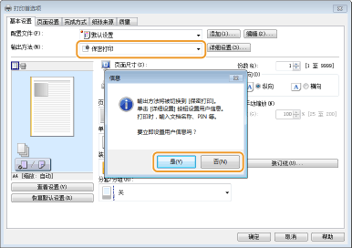 在 [输出方法:] 中选择 [保密打印]。