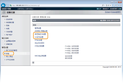 单击 [密钥和证书设置] 验证密钥对,或单击 [CA证书设置] 验证 CA 证书。