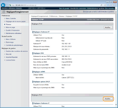 Vérifier si les réglages sont correctsAssurez-vous que l'écran de l'interface utilisateur distante s'affiche sur votre ordinateur avant d'utiliser l'adresse IPv6 de l'appareil. Démarrage de l'interface utilisateur distante
