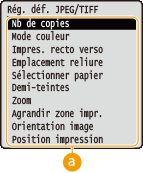 Sélection des réglages