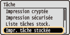 pour sélectionner <Impr. tâche stockée> et appuyez sur