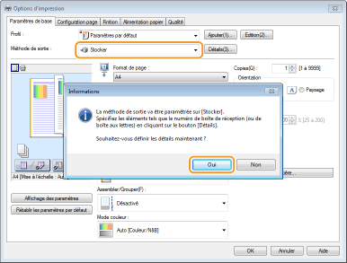 Sélectionnez [Stocker] dans [Méthode de sortie], puis cliquez sur [Oui].