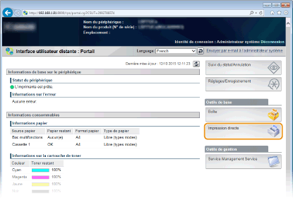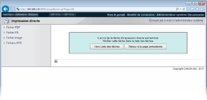 Vous pouvez imprimer un fichier depuis un navigateur Web (interface utilisateur distante) sans ouvrir le fichier. Vous pouvez aussi imprimer un fichier PDF localisé sur le Web en spécifiant juste son URL.