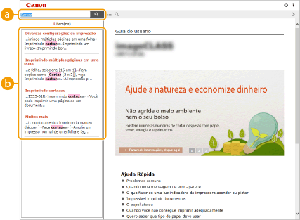 Clique para exibir informações sobre como visualizar o Guia do usuário, como realizar uma pesquisa e outras informações.
