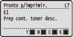 Você pode verificar o estado do recipiente de toner usado pelo <Status Toner Descart> embaixo <Info. Consumíveis>Recomenda-se que você verifique se tem à mão um novo recipiente de toner usado antes de imprimir um trabalho grande . Info. Consumíveis