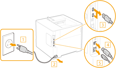 Desconecte os cabos e o cabo de alimentação da máquina na ordem numérica conforme na ilustração abaixo.