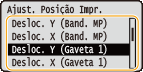 Para <Desloc. X (2 Lados)>, primeiro selecione a fonte de papel, depois ajuste a posição de impressão.