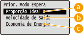 Asteriscos (*)Configurações marcadas com um asterisco (*) não são exibidas de acordo com outras definições ou se houver um cartão SD opcional instalado na máquina.