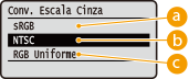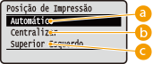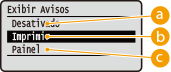 Asteriscos (*)Configurações marcadas com um asterisco (*) não são exibidas de acordo com outras definições ou se houver um cartão SD opcional instalado na máquina.