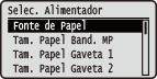 Configurações comunsAs configurações são as mesmas que as de <Fonte de Papel> em Menu de Configuração. As configurações especificadas aqui também são aplicadas às configurações de <Fonte de Papel>.