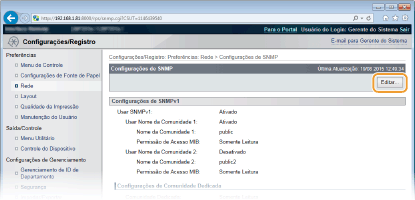 As configurações de SNMP também podem ser acessadas do menu de configuração do painel de operação. Configurações SNMP