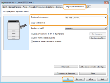 Você pode usar o driver de impressora PCL6, assim como o driver de impressora UFR II. As configurações de impressão disponíveis variam dependendo do driver de impressora. Para mais informações, clique em [Ajuda] em cada tela de driver de impressora.