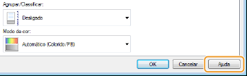 Clicando em [Ajuda] na tela do driver de impressora, a tela Ajuda é visualizada. Nesta tela, você pode visualizar descrições detalhadas que não estão no Guia do usuário.