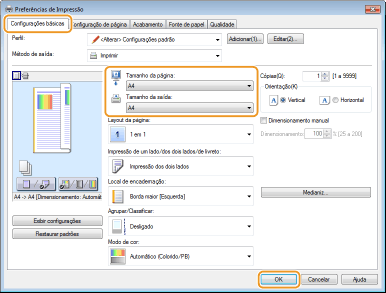 Selecione o tamanho do papel em [Tamanho da saída]