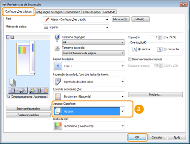 aba [Configurações básicas] Selecione [Agrupar] ou [Classificar] em [Agrupar/Classificar] [OK]