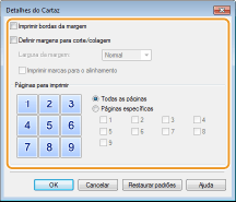 A tela seguinte permite que você faça ajustes nas bordas e margens com cola. Para mais informações, clique em [Ajuda] na tela do driver da impressora.