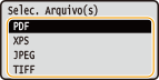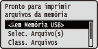Você pode imprimir arquivos de imagens (PDF, TIFF, JPEG e XPS) armazenados em um dispositivo de memória USB conectando o dispositivo diretamente à máquina. Usando essa função, você pode imprimir sem a utilização de um computador.