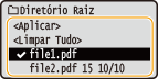 Se selecionar <Class. Arquivos> na tela na etapa 1, você pode alterar a ordem de exibição dos arquivos ao selecionar o arquivo para imprimir.