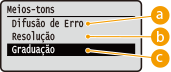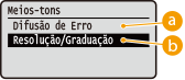Quando <Difusão de Erro> está definido como <Ativado>, <Resolução/Graduação> não é exibido.