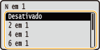 Selecione se deseja imprimir várias páginas em uma única folha, alocando-as sequencialmente a partir do canto superior esquerdo. Por exemplo, para imprimir quatro páginas em uma única folha, selecione <4 em 1>. Use